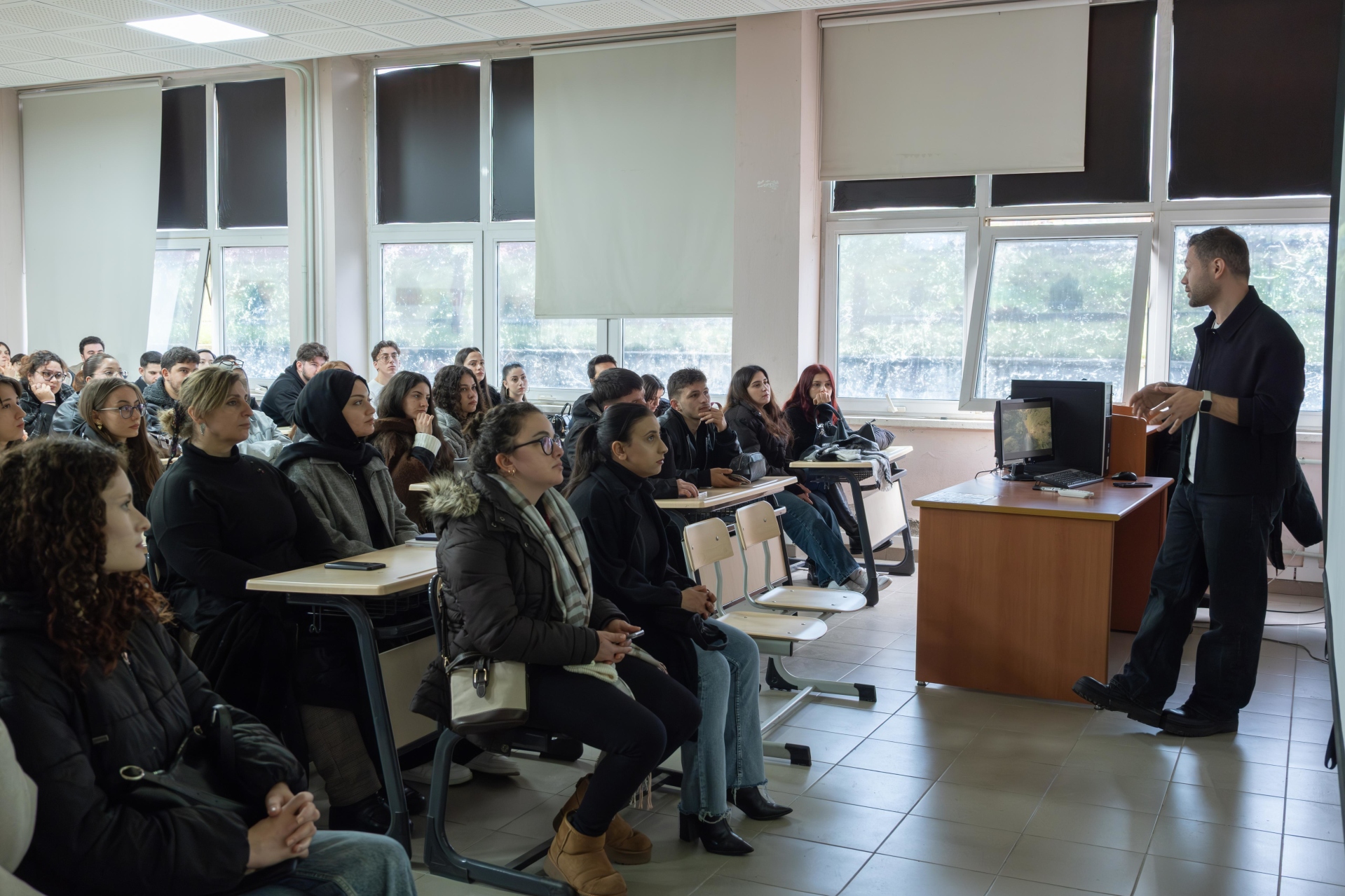 Trabzon Üniversitesi İletişim Fakültesi’nde FIDZ17 nolu derslikte 23 Şubat 2026 Pazartesi günü saat 12.00’de gerçekleştirilen “Turizm ve Destinasyon Tanıtımı” başlıklı söyleşi, öğrencilerin yoğun katılımıyla gerçekleşti. Öğr. Gör. Dr. Asiye Nurcihan DERELİ tarafından düzenlenen etkiniğe yönetmen ve sinematograf Halil Bekar’ın konuk oldu.